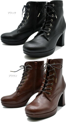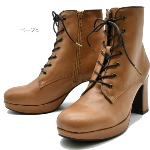 レースアップブーツ ショートブーツ 厚底 ブラック ブラウン ベージュ 黒 茶色 チャンキーヒール