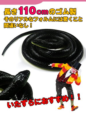 \7/30(金)ポイント5倍祭り/ ■ヘビのおもちゃです ■長さ110cmのゴム製です ■そのリアルなフォルムには驚くこと間違いないです ■ハロウィンなどでのいたずらにおすすめです 【商品内容】:ダミースネーク 【サイズ】:直径1.5cm×長さ110cm 【重量】:200g 【素材】:ゴム ○使用上の注意事項○ ※改造/本来の目的以外/強い衝撃などはお控え下さい。